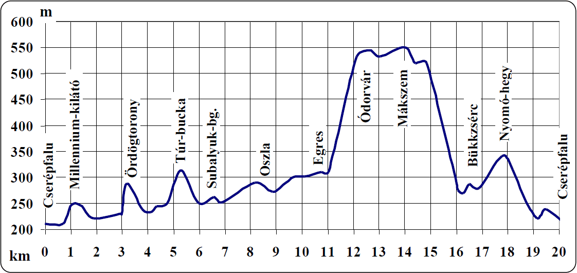 Less Nándor Emléktúra - szintmetszet, 20 km
